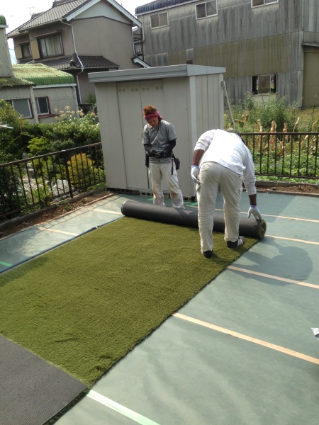 芝人では、防草シートを施工した上で人工芝を敷設し、