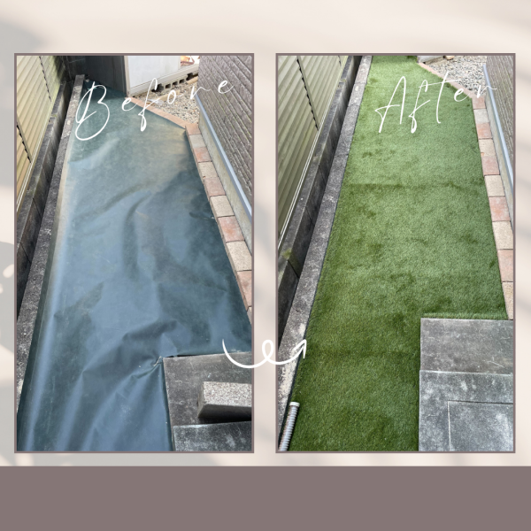 防草シートの上に人工芝を敷くことで見た目も美しくすることができます。